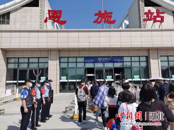 恩施车站派出所主动联系恩施站,围绕五一客流变化,突出关键时段、关键位置,合理部署警力,切实做好秩序维护工作。同时,联合驻站武警、特警,加强对车站广场、出站口等重点部位的巡控力度,提高见警率、盘查率和管事率,维护辖区平安稳定。恩施车站派出所将严格落实疫情防控措施,配合疫情防控部门做好旅客的体温检测、扫码进站等防控工作,并督导安检工作人员员落实好安检查危工作,确保人人安检、件件过机,坚决杜绝一切危险品进站上车,营造平安站车环境。
