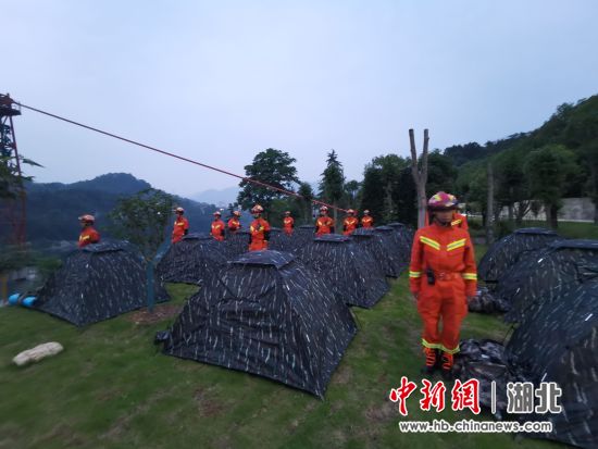 中新网湖北新闻5月21日电 (伍文龙)5月19日至20日,长阳县消防救援大队组织开展地震灾害应急救援实战拉动演练。