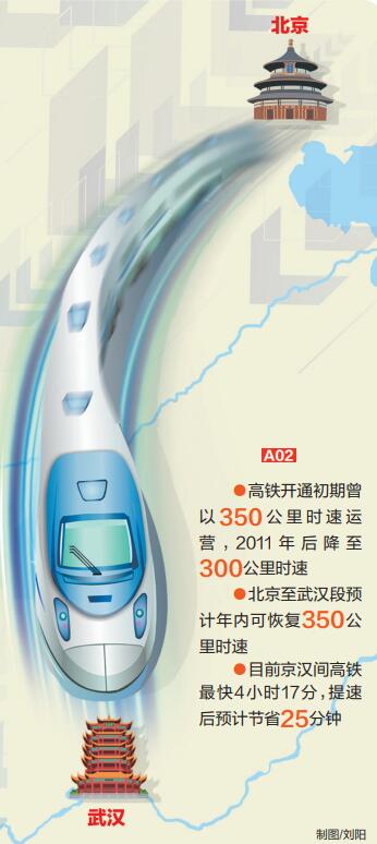 楚天都市报极目新闻讯(记者潘锡珩)极目新闻记者昨日获悉,京广高铁北京至武汉段正在开展安全标准示范线建设,通过一系列改造提升,预计今年上半年可恢复350公里/小时的运行速度。有交通专家表示,设计时速350公里的高铁,固定基础设施都支持按照350公里/小时的速度运行,通过维修改造可以达速运行,技术是成熟的,安全是可控的。