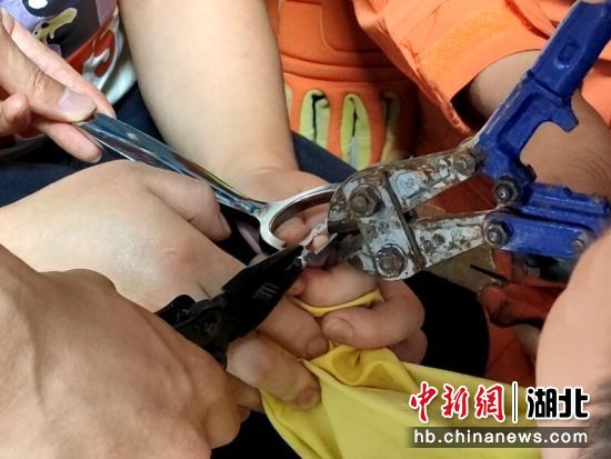 中新网湖北新闻5月24日电 5月21日晚上20时45分,宜昌夷陵消防接到报警:位于夷陵区东湖雅居A区4号楼某室小孩手指被卡,家人尝试多次未果,急需消防队员救助。接到报警后,消防员救援人员立即赶赴现场。