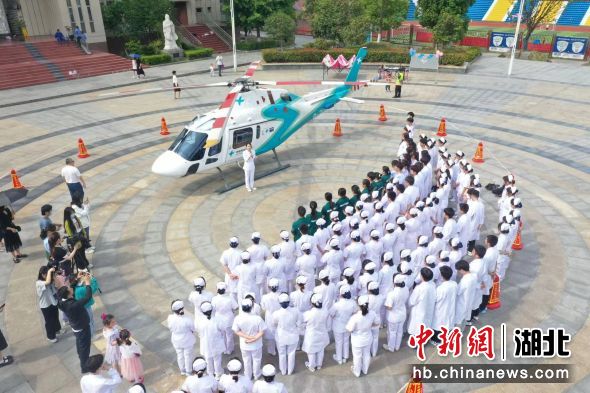 近日,全国首个航空医学救援实践课在湖北医药学院正式开讲。据介绍,航空医学救援又称空中医学救援,是指利用航空飞行器提供紧急医疗服务和突发公共事件医学救援,是医学救援的一大分支。航空医学救援是一种新的院前急救模式,受地面交通影响小,能够打破空间和地域限制,极大地缩短危重患者的救治时间,有助于全面提升应急医疗救援的快速反应能力和紧急处置能力,特别是在自然灾难、海上救援、重大突发事件救援等方面都有着巨大优势。(冯彦玮/摄)