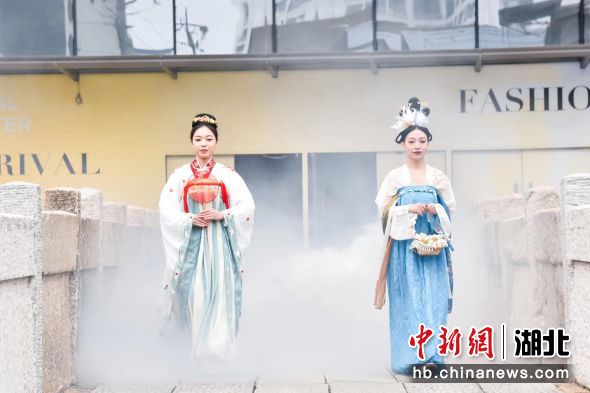 中新网湖北新闻2月22日电 武汉汉正街21日举行“二月二·龙抬头”“汉”服巡游活动,同期举行汉派服饰原创新品发布会,位于汉正街云尚·武汉国际时尚中心旁361年历史的保寿硚,首次变身时尚T台举办云尚春季新品发布,身着靓丽春装的模特们从桥头走出,古桥石板与现代时尚碰撞出一步一景。