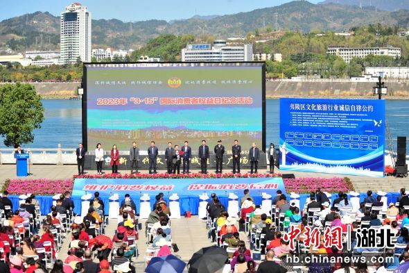 中新网湖北新闻3月14日电 (董娈捷 郭勇)湖北省宜昌市夷陵区14日上午在“湖北旅游名镇”三斗坪举办2023年“3·15”国际消费者权益日纪念活动。活动现场除了文艺宣传外,还穿插了有奖问答环节,来自外地的游客和附近村民纷纷参与互动答题。