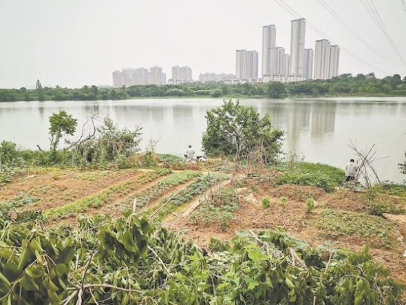 一位正在菜地忙碌的老人告诉记者,他住在附近,看到湖边坡地土质不错,有人开荒种菜,他也开垦了2块菜地,种植辣椒、茄子等日常小菜,没有考虑过是否违规等问题。