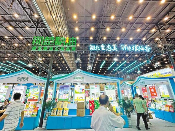 湖北展厅综合面积1000余平方米,分设粮油区、脱贫区和粮机区三大主题展区。展示现场涵盖菜籽油、大米、麦面、茶籽油、橄榄油、芝麻油、粮油综合在内的300余款绿色粮油产品及湖北精品粮机设备。