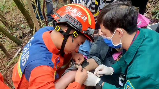 中新网湖北新闻10月9日电 (向兵)近日,宜昌市点军区花栗树村龙曹路二组一人上山时不小心被捕兽夹夹住,急需救援。点军消防站接报后迅速携带救援装备赶赴现场。