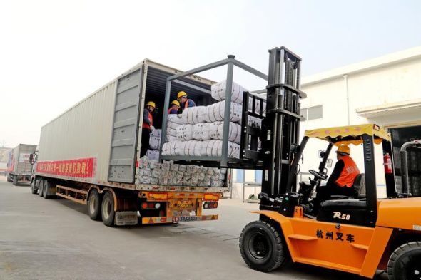 当日上午,极目新闻记者在中央救灾物资武汉储备库内看到,几辆超长卡车一字排开,一辆辆叉车忙碌地从仓库转运物资出库,工人们正在整理装车。这批总价值300万元的物资包括帐篷、睡袋、高寒棉被、棉大衣等,预计36个小时抵达青海地震灾区。
