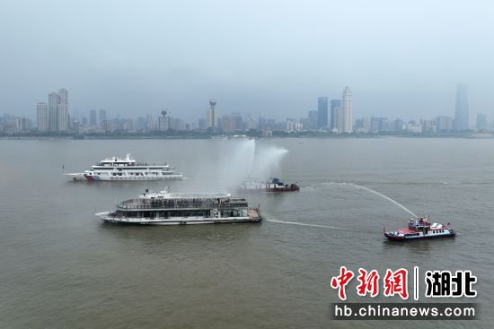 中新网湖北新闻4月29日电 (杨文灿 彭秋红 周斌)4月28日,由武汉海事部门组织开展的武汉港中心区规模最大的纯电动船舶水上应急综合演习在月亮湾轮渡码头附近水域成功举行。来自海事、交通、公安、消防、武警、航道、船级社、港航企业等15家单位的11艘船舶及2架无人机参加了演习,参演人员近100人。