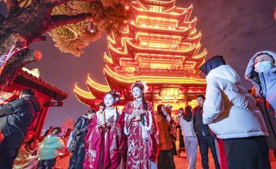 楚天都市报极目新闻讯(记者邬晓芳 李辉 通讯员李博)花灯逢元夜,今宵共团圆。喜庆的年味还意犹未尽,《夜上黄鹤楼》来为春节假期的欢乐时光续航。2月12日元宵节当晚,这里特别举办了“花灯闹元宵,缘牵名楼夜” 主题游园会,登名楼、赏花灯、品民俗、牵红线……一系列精彩活动,带大家领略国潮盛宴,喜气洋洋闹元宵。据介绍,该主题游园会将持续到14日。
