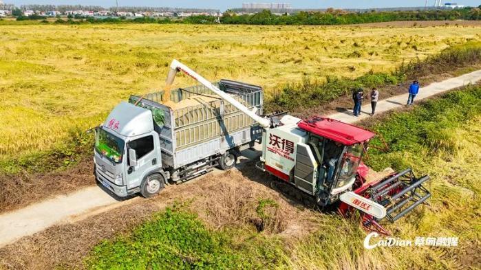 复原村的丰收场景正是蔡甸全区水稻生产的生动写照。据了解,2025年全区水稻播种面积达14.65万亩,预计平均亩产约1500斤,整体形势喜人。