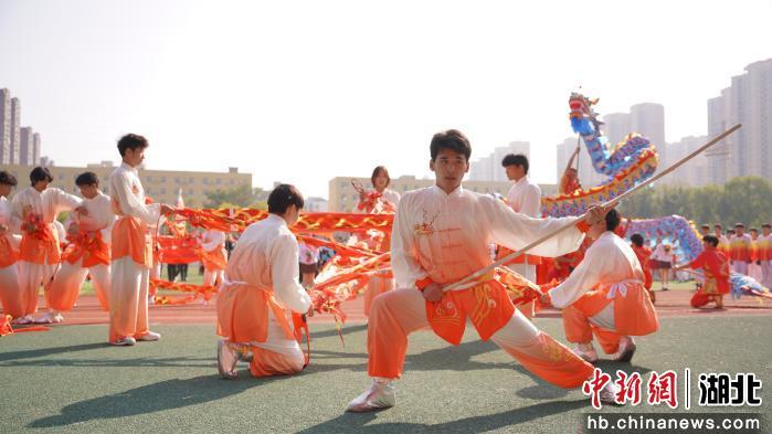 中新网湖北新闻10月24日电 (杨学婕 孙鸣晨 钟志勇)10月23日上午,武昌工学院第二十二届田径运动会开幕式现场,体育学院带来的舞龙+武术表演惊艳亮相,巨龙翻腾,拳风凌厉,传统与激情在此刻交汇。