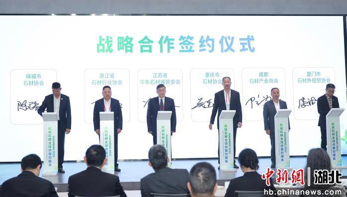 中新网湖北新闻10月27日电(陈罡)由中国石材协会、中国房地产业协会、全联石材业商会、湖北省石材协会、麻城市石材协会主办的2025麻城石材全球供需对接会27日在中部国际建材展览馆举行。会议期间共举行8轮签约活动,其中麻城石材招商项目签约7个,协议投资额18亿元。