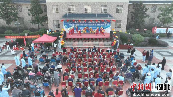 中新网湖北新闻10月29日电(程思 文雅)秋阳和煦,桂子飘香。10月28日上午,湖北通山县城市福利院内暖意流淌、笑语盈盈,一场融合敬老深情与文明新风的温情盛宴正热烈举行。台下,百余名老人与前来探望的亲属手持小红旗,随着节拍轻轻挥舞,汇成一片温暖的红色海洋,每个人的脸上都洋溢着喜悦。