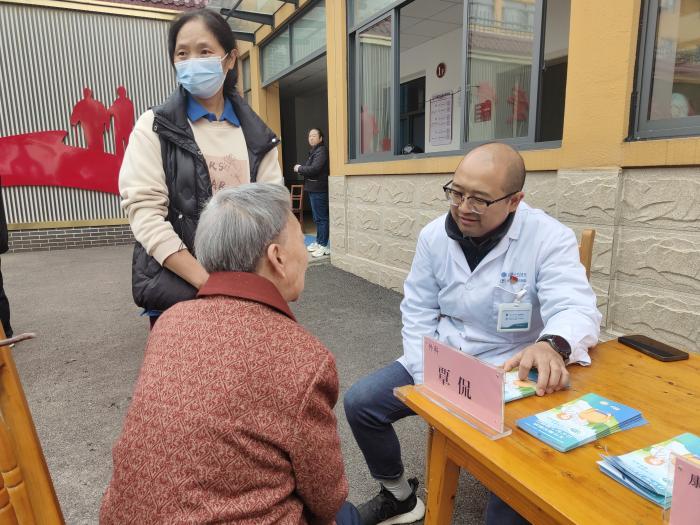 “您血压有点高,平时要少吃盐,饭后可以在院子里慢走一会儿,药要按时吃,别忘喽……”全科医学科主任孔亚婷一边在健康手册上标注注意事项,一边反复叮嘱;外科医生覃侃则专注为有骨关节疼痛、外伤后遗症的老人检查身体,查看伤口恢复情况,手把手教老人和护理人员正确的按摩缓解手法;康复科医师张美英针对老人常见的肢体活动不便问题,现场示范简单的康复训练动作,鼓励老人们坚持锻炼,保持身体机能。医务人员不仅为老人们提供免费血压测量、血糖测量及诊疗服务,还根据诊断结果,为有需要的老人送上对症的常用药品,并逐一讲解用药剂量和服用方法。党员志愿者们则穿梭在人群中,为老人们分发健康宣传资料,陪老人唠家常,倾听他们的心声,庭院里不时传来阵阵欢声笑语,暖意融融。