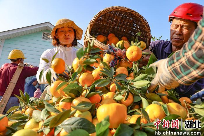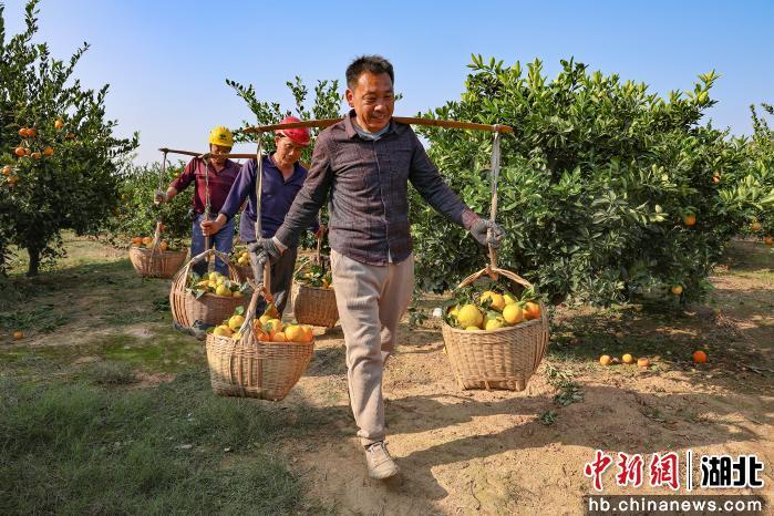 10月30日,在公安县章庄铺镇万亩橘园中,随处可见满怀喜悦忙碌采摘柑橘的果农,大小车辆穿行在蜿蜒的道路上,将一车车优质鲜果集中分拣、包装后运往全国18个省38个市州。