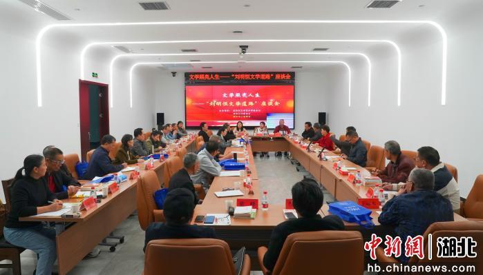 中新网湖北新闻10月31日电 (胡剑芳)“他的文字里满是乡情、亲情与山水情,更用文学力量带动家乡发展——这样的‘不老松’,值得我们所有人学习!”10月28日,在咸宁市咸安区文体中心举行的“文学照亮人生——刘明恒文学道路”座谈会上,作家陈大银的动情发言,引发近40名省、市、区文学界代表的共鸣。这场由咸安区文联主办、区作协与市小说学会承办的座谈会,不仅是对咸宁文坛标志性人物刘明恒60年创作生涯的梳理,更成为一场传承“扎根生活、人民至上”创作理念的精神交流会。