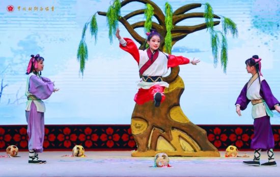为将人物的灵动演绎得淋漓尽致,小演员苦练前桥、绞柱、矮子步等技巧,一次次地蹲身、移动,哪怕练到双腿酸麻也咬牙坚持。手中那个关键的“球”,更是反复练习的重点——抛接、翻滚、传递,每一个动作与技巧都经过了千百次磨合,才在舞台上化作举重若轻的童趣演绎。