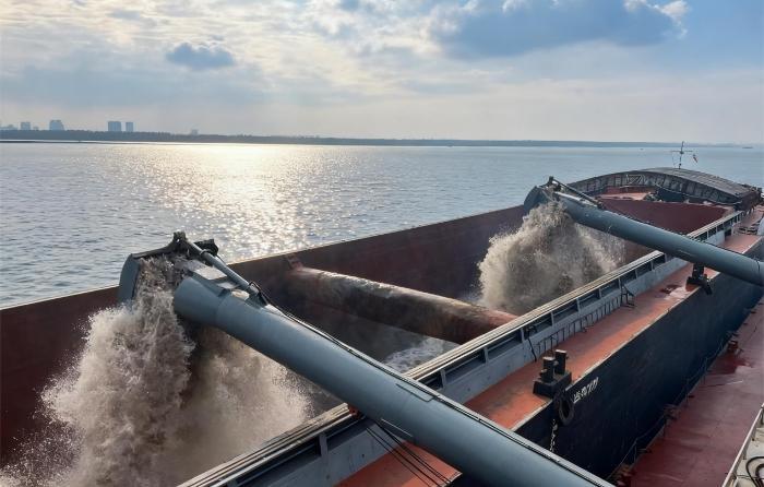 作为推动“长江经济带”绿色发展、落实省委省政府畅通物流体系部署的关键举措,2024年,长江新材旗下武汉市城市建设砂石保障有限公司联合嘉鱼公司、洪湖公司,成功实施长江经济带首例疏浚砂跨市利用项目,累计上岸砂石102万吨,外运至武汉67万吨,初步构建起“疏浚—上岸—转运—利用”的全链条资源化利用模式。
