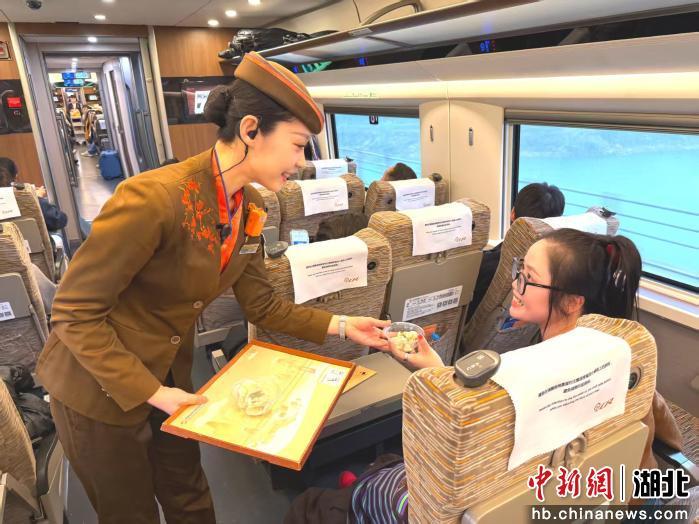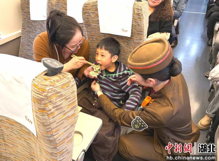 中新网湖北新闻11月7日电 (余哲 唐佳怡)立冬寒风起,旅途暖意浓。11月7日,由北京站驶向武汉站的G67次高铁列车内暖意融融。中国铁路武汉局集团有限公司列车长谷金韩带领乘务组,开展“立冬送饺子”暖心服务,将一份份冒着热气的饺子递到旅客手中,让奔波的人们在冬日旅途里触摸到家的温度。