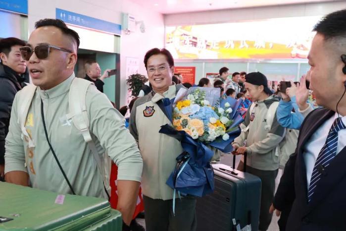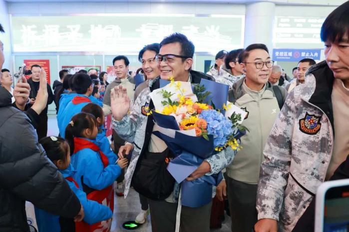 当谭咏麟、黄日华等熟悉的面孔依次走出机场抵达口时,现场瞬间沸腾。谭校长一如既往地随和,面带标志性笑容,不断向周围粉丝挥手致意;“郭大侠”黄日华亲切互动、合影、签名,并向稻花香的粉丝热情打招呼;还有洪天明、关礼杰、李子雄、张兆辉等一众明星,尽管舟车劳顿,但大家活力满满,与粉丝和球迷们展开热烈互动。随后,明星足球队一行前往丹江口大坝,领略南水北调中线工程的宏伟与壮阔。