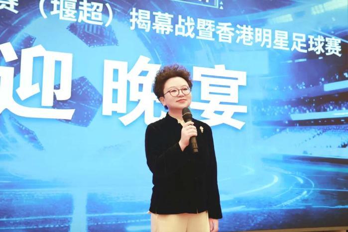 作为活动总冠名方,稻花香集团党委副书记方丽华上台致欢迎词。她说,香江流彩,车城增辉。立冬之夜,胜友如云。一幕港剧,一首金曲,串起大家无数青春回忆。尤其难忘谭校长,曾在稻花香“活力之光”演唱会的舞台倾情献唱,成就一段音乐与美酒交融的经典。从武汉到十堰,从舞台到球场,缘续情长,更胜往昔。她表示,足球是团队精神的碰撞,美酒是生活艺术的流淌。期盼二者相遇,能让堰超火爆出圈,成为品牌与文化交响的超级IP。
