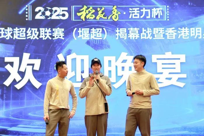 香港明星足球队代表黄日华、洪天明、刘佳、马跃相继上台,分享了与十堰的缘分,以及此行所见所闻所感,表达了对美丽山河、十堰美味、稻花香美酒的喜爱之情。他们表示,非常开心来到仙山秀水的十堰,也十分期待“稻花香·活力杯”足球赛,与堰超联队进行精彩对决,在体育竞技中传递足球的快乐与健康活力的精神。