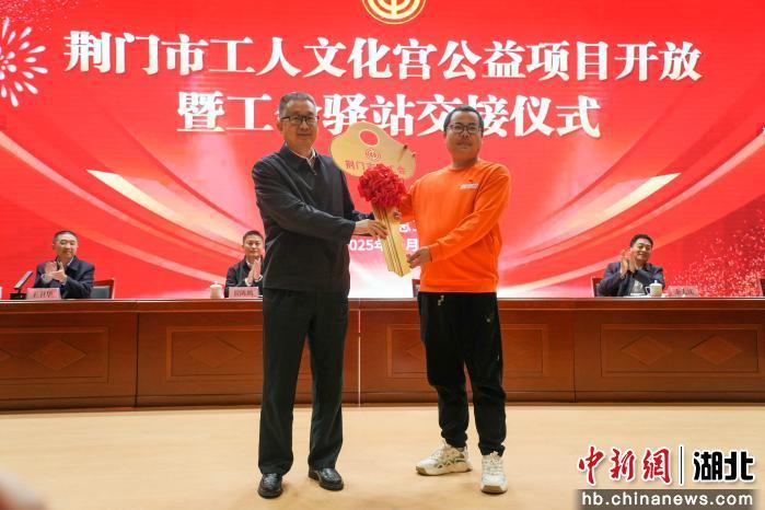 仪式上,荆门市总工会相关负责人介绍了文化宫公益项目改造情况。谢继先向淘宝闪购荆门负责人交接了工会驿站钥匙,市总工会现场向淘宝闪购外卖员赠送了工会礼包。