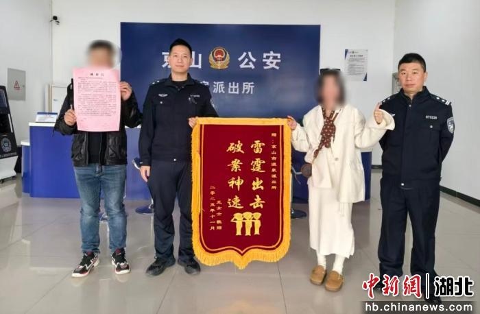 中新网湖北新闻11月12日电 (杨怡 刘丽琰)“雷霆出击破案神速!”11月8日,市民王女士及其家人为京山市公安局温泉派出所送来一面锦旗和一封情真意切的感谢信,向帮助其追回被盗电动车的民警表示感谢。