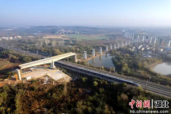 中新网湖北新闻11月20日电 (张周凯 孙雪娜)11月20日凌晨,夜色中的武汉黄陂区塘埠口滠水河畔,一座总重6000吨的“T字型”转体桥在液压驱动下缓缓转动。历经110分钟逆时针旋转83度后,这座长112米、宽12.6米的钢铁巨构精准抵达设计桥位,成功跨越京广高铁与沪蓉铁路下行线,标志着新建武汉至合肥高速铁路长江新区至武汉天河段建设取得关键突破。