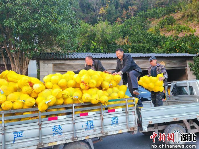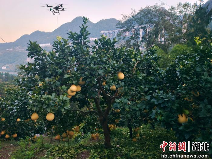 中新网湖北新闻11月28日电 (舒淑 向炎坪 廖永华)金黄饱满的蜜柚挂满枝头,一架载重无人机轻盈起飞,穿越坡谷,将刚刚采摘的蜜柚从山腰果园精准运抵公路旁的集散点——11月24日,湖北省咸丰县朝阳寺镇水井槽村的500亩蜜柚基地里,这一幕科技感十足的运输场景,成为今年丰收季的最新亮点。
