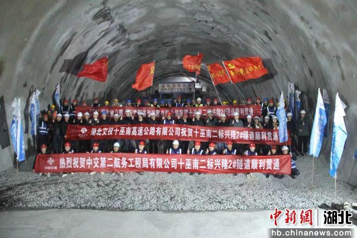 中新网湖北新闻12月3日电 (李怀智 张良辉)由湖北交投投资、中交二航局承建的十巫南高速公路全线最长隧道——兴隆2号特长隧道,12月2日顺利贯通。