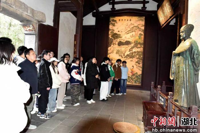 师生们循着先贤足迹,在古隆中牌坊前,文学与传媒学院教授高新伟从“淡泊明志,宁静致远”的千古名句谈起,解读牌坊楹联“三顾频烦天下计,两朝开济老臣心”,将诸葛亮忠贞为国、鞠躬尽瘁的一生娓娓道来。移步“明良千古”展厅,珍贵的文物与展陈无声讲述着诸葛亮从耕读隐居到受托辅政的历程;武侯祠内,庄重的塑像令人肃然起敬;三顾堂前,“三顾茅庐”的典故仿佛重现。历史场景的切换,让书本上的文字变得可触可感,隆中精神中深厚的人文积淀与家国情怀直抵人心。