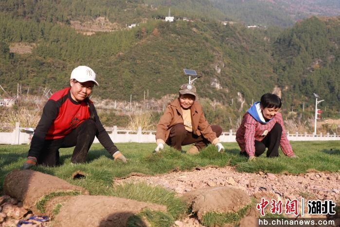 中新网湖北新闻12月18日电 (黄华 唐涓)冬日暖阳照耀下,湖北省巴东县沿渡河镇神农公园建设现场处处涌动着暖意与生机。工人们忙着铺设草坪、栽植绿化树,挖掘机挥舞长臂转运泥土,一派忙碌的建设景象。