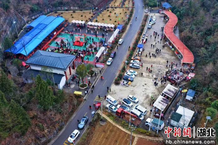 中新网湖北新闻12月21日电 (董晓斌 周晓雨 李仁安)湖北省宜昌市点军区土城乡落步埫第十届年猪宴民俗文化活动12月20日举行,当地村民大摆“年猪宴”,两千余名游客入乡随俗,品味土家族独特的“年味”。