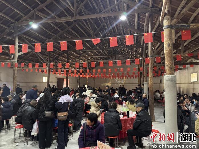 中新网湖北新闻12月23日电 (彭迎兵 许若茜)12月20日,荆门市东宝区子陵铺镇八角村热闹非凡。五百多位从城里来的客人,与线上直播间里数千名观众,正共同期待着冬至前日别开生面的聚会。粮仓厚重的大门内,鲜红的桌布已铺开,镜头扫过古朴的木梁砖墙,掠过一张张期待的笑脸,将这份独特的乡土氛围传递到远方。
