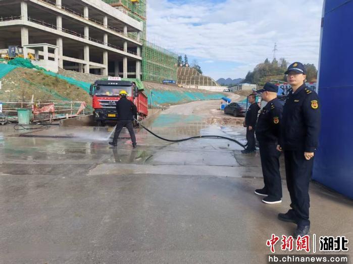 中新网湖北新闻12月24日电 (李军 向杰)12月23日,在利川市利天下项目施工现场,渣土运输负责人张光伟正监督车辆进行出场前的高压冲洗作业。“我们按要求设置了标准冲洗设施,确保每辆车净车出场,最大限度减少带泥上路。”他介绍道。
