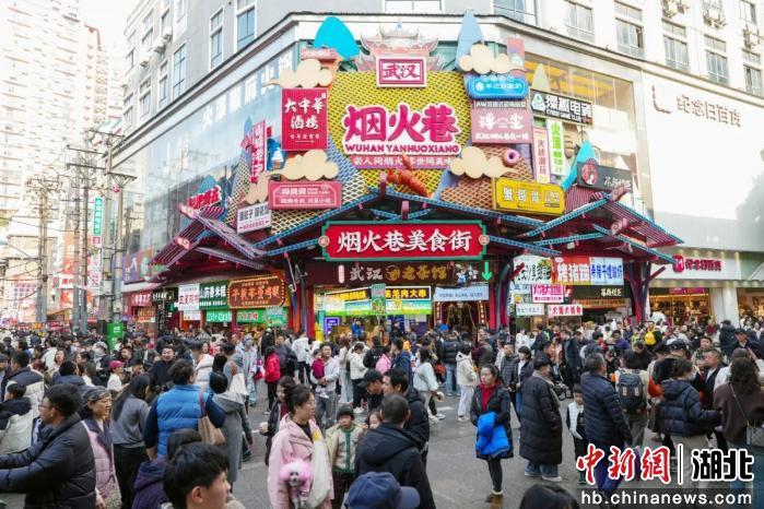 2025年蛇年春晚,演员朱一龙到江汉路烟火巷拜大年,让这条美食街以“春晚同款”身份在社交平台火出圈,江汉路街区同步设置总台春晚武汉分会场打卡装置,吸引众多游客前来合影,带动江汉路步行街客流量超1149.7万人次,同比增长7.8%,拉动全区商圈客流量同比增长20%。外地游客张先生感慨道,“来烟火巷‘拜大年’不仅感受到了浓浓的年味,还打卡了很多特色小店,这样的活动太有吸引力了。”