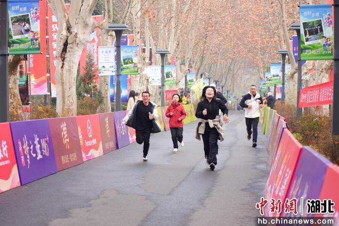 随着清脆的鸣笛声响,干部职工们从楚城广场出发,途经磨山码头、自然之谜遗址、五松坡、三友庐、千帆亭等景点,在湖光山色间感受运动乐趣,沉浸式领略荆山楚水的生态之美。