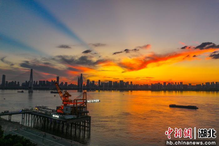 奔至建设三路江滩段,赛道旁的巨型艺术装置——一冶重件码头映入眼帘,那是由龙门吊改造而成的工业地标。褪去油污锈迹的钢架在晨光中泛着金属光泽,镂空设计与长江江面的波光相互映衬,随手一拍就是工业风大片。跑过此处时,风穿过钢架的缝隙发出轻微回响,仿佛是工业时代与奔跑节奏的隔空共鸣,脚下的赛道仿佛变成了时光跑道,每一步都在与城市的工业记忆对话。
