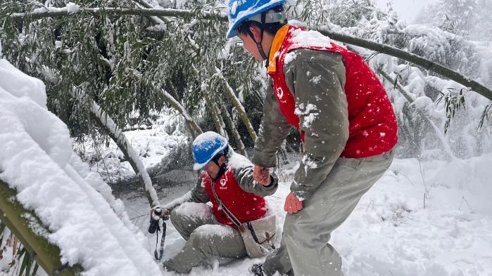 作为此次特巡的带队人,袁磷有着丰富的高山巡线经验。他深知,这样的天气里,经验与谨慎同样重要。三人迎着晨曦向山中进发,深深浅浅的脚印很快被风雪覆盖。