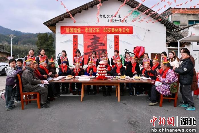 中新网湖北新闻1月8日电 (程思 文雅 陈雄晖)福启新岁,暖入人心。近日,通山县闯王镇苦竹林村文化广场彩绸飘展、红联高悬,一派喜庆祥和的景象。天刚蒙蒙亮,村妇联执委周小芳便和姐妹们忙碌起来,扫尘、布置场地、清点礼品,有条不紊。“爷爷,您来啦!快这边坐,演出马上就开始咯!”她笑着上前搀扶老人入座,这已是她连续第二年参与全村八旬老人集体生日会的筹备工作。