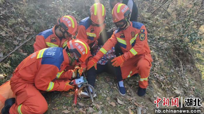 中新网湖北新闻1月16日电 (彭惠华 张智彬)湖北省罗田县消防救援大队指挥中心15日接到报警,大河岸镇周家咀村一名老年村民上山采药时不慎触发捕兽夹,脚部被牢牢夹住,被困深山无法脱困,情况紧急。