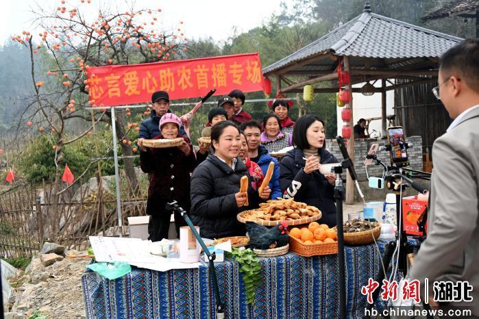 活动现场还设置了农产品展台,鲜猪肉、腊肉、景阳椪柑、板蓝根油菜薹等本地特产琳琅满目。返乡企业家、村播达人、种植户代表共聚长桌,畅叙乡情、共谋发展。同时,农家小院内开辟了10个直播间,来自广东、北京、宜昌等地的网红主播与本地村播同台带货,吸引数百万粉丝在线关注,掀起“云端”购年货热潮。