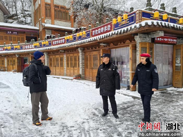 中新网湖北新闻1月20日电 (赵伟 宋建彬)大寒时节,风雪突袭。1月20日,湖北省十堰市武当山景区气温骤降至零下11摄氏度,金顶等核心区域积雪厚达10厘米,道路结冰风险剧增。为保障游客安全,景区于19日紧急发布公告临时暂停对外开放,而此时山上仍有200余名游客。十堰市公安局武当山特区分局武当山派出所,联合多部门织密安全防护网,用24小时不间断值守与暖心服务,让冰封的武当山涌动阵阵暖流。