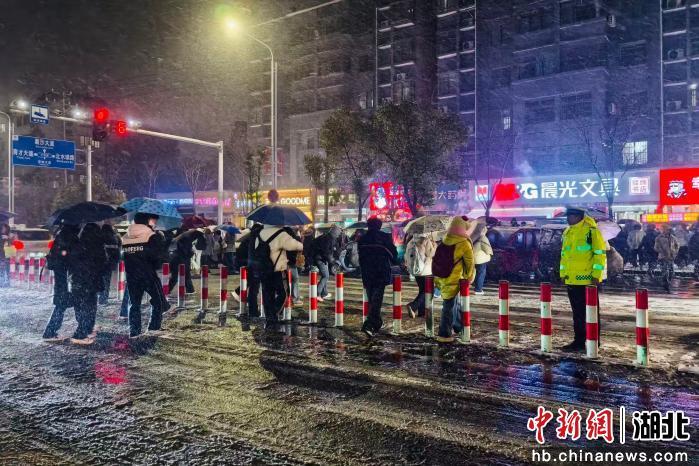 宜城公安迎战风雪,全力守护群众平安出行路。宜城公安供图