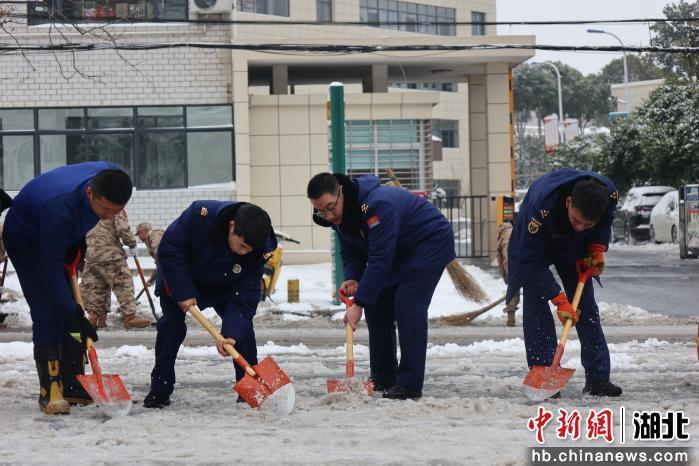 南漳县消防救援局开展扫雪除冰工作。南漳县消防救援局供图