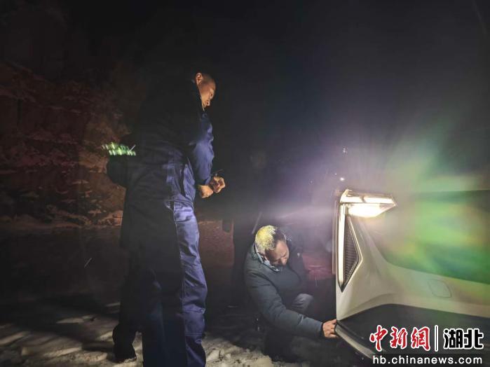 在兴山县 S252仁圣村附近时,巡查人员发现一辆私家车停在道路弯道处,车身陷入积雪,车辆多次尝试启动均未成功。巡查人员发现这一情况迅速上前询问是否需要帮助。经现场询问得知,该车因低温冻阻导致启动困难,加之路面湿滑车轮打滑,无法正常行驶。