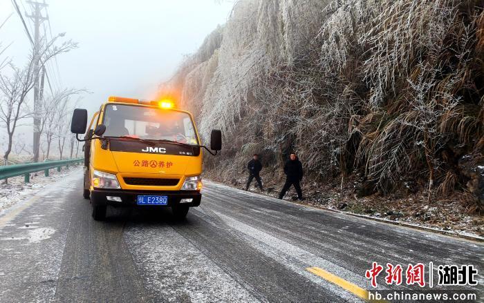 当日上午9时许,与供水抢修同步的,是一场守护电力“生命线”的协同作战。为保障水厂供电万无一失,国网崇阳县供电公司的巡线车缓缓驶上覆冰的盘山公路。车外,路面早已冻成光滑的“冰板”,车轮数次打滑,每一次爬坡都如履薄冰;车内,老师傅王勃与同事赵艳斌双眼紧盯着窗外的供电线路,不敢有丝毫松懈,生怕错过一处隐患。