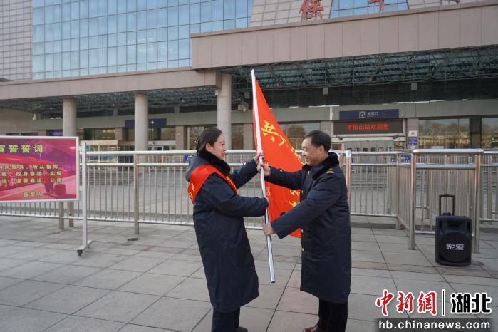 中新网湖北新闻2月2日电 (韩冬梅)2月2日春运首日,武铁平顶山东车站党委在平顶山站站前广场举行“当武铁先锋 做春运榜样”主题实践活动启动仪式,正式吹响2026年春运集结号。