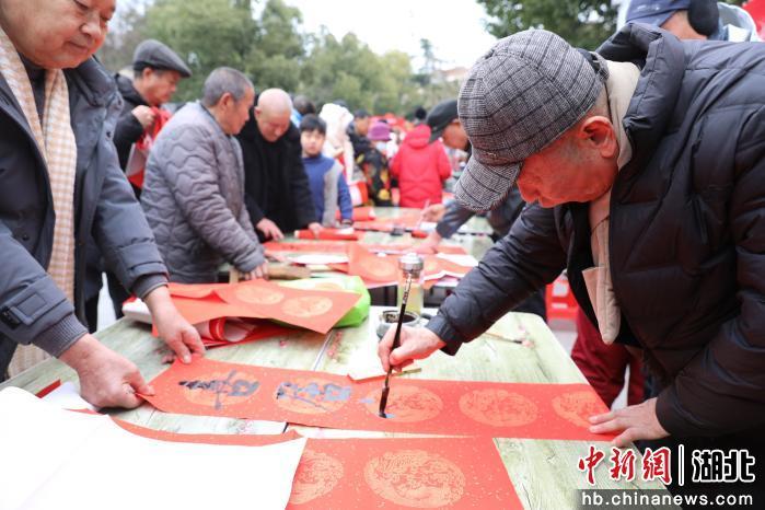 舞台之外的年味同样浓郁。气势磅礴的舞龙舞狮、趣味横生的踩高跷以及独具地方特色的“蚌壳精”表演,轮番上阵,引得喝彩不断。非遗市集区域熙熙攘攘,市民们不仅能免费品尝到酸梅汤等特色饮品,还能近距离欣赏或体验糖葫芦、泥人、剪纸等传统手工艺的魅力。义务写春联专区,省市书法家协会的书法家们现场挥毫,免费书赠春联和“福”字,将墨香祝福送到千家万户。